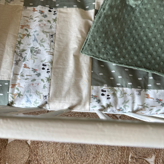 Prête à partir, Couverture de style courtepointe légèrement matelassée, Jungle. Endos doux en minky vert olive