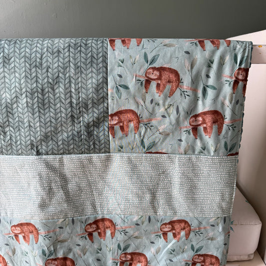 Prête à partir, Couverture de style courtepointe légèrement matelassée, Paresseux. Endos doux en minky émeraude