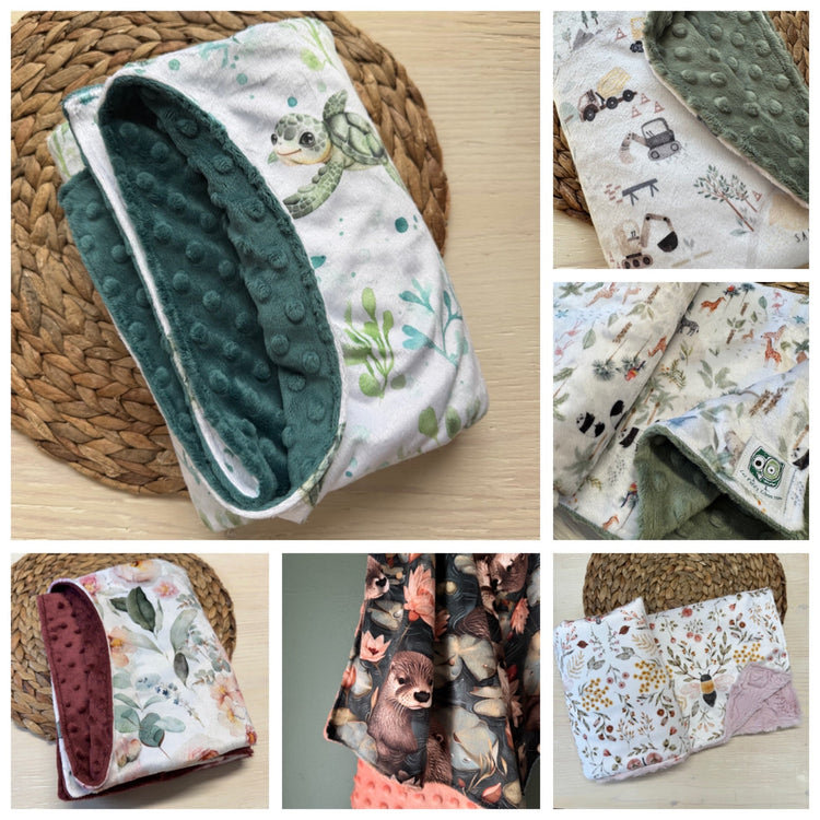 Doudou Douce des 2 cotés PRÊTES À PARTIR, minky (peluche) imprimé devant et arrière minky ou fourrure