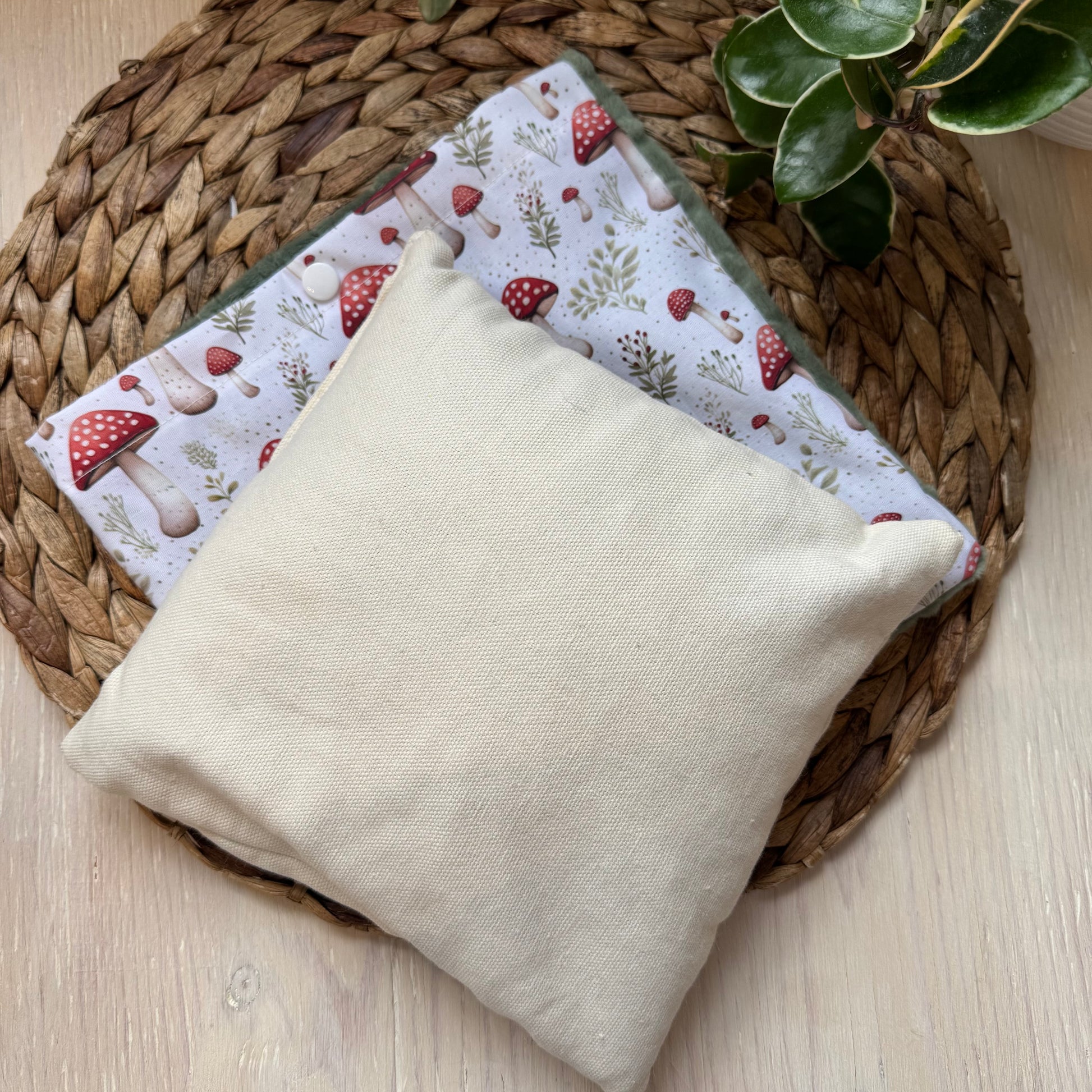 Small hot/cold pack and pillowcase. It can be heated or cooled (frozen). For minor injuries, sprains, headaches, and especially colic! It should not be washed (except for the pillowcase). Contains 100% natural ingredients (rice and buckwheat hulls). The pillowcase is machine washable and dryable; one side is cotton, and the other is soft minky. The inner bag is made of 100% cotton.