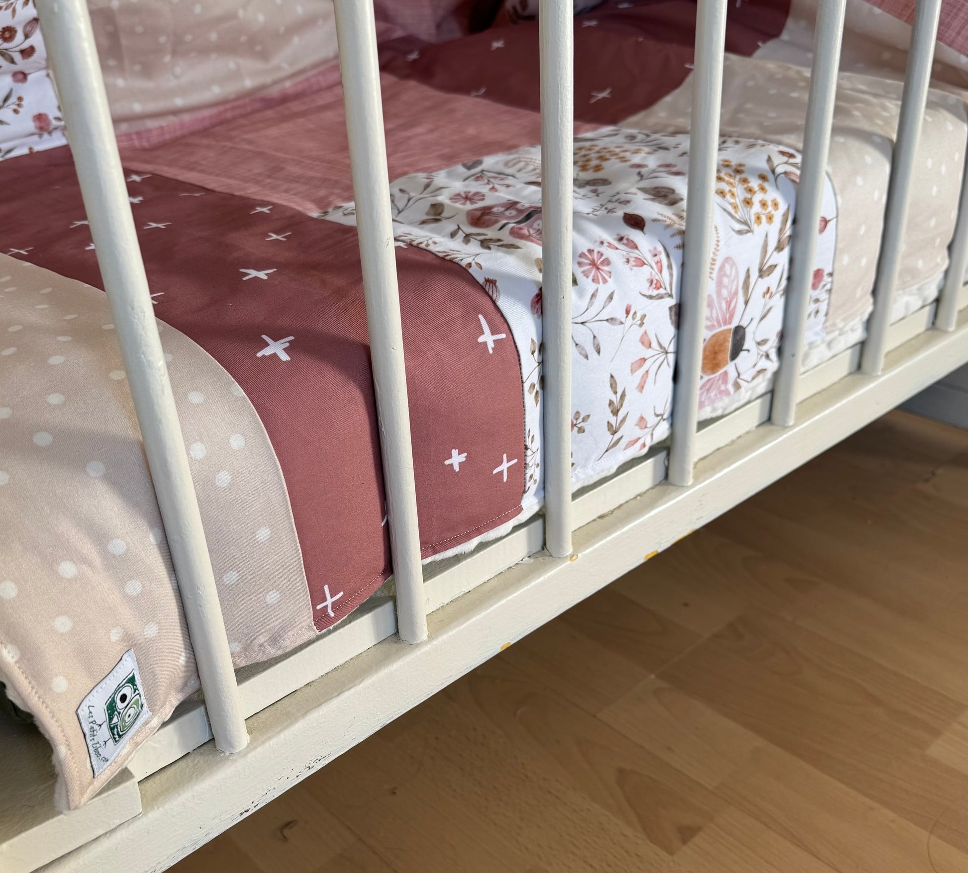 The quilts are lightly quilted, and the blanket is lined inside with a 'codelle' (a foam layer approximately 1 cm thick) which provides a little thickness and warmth while remaining very flexible.