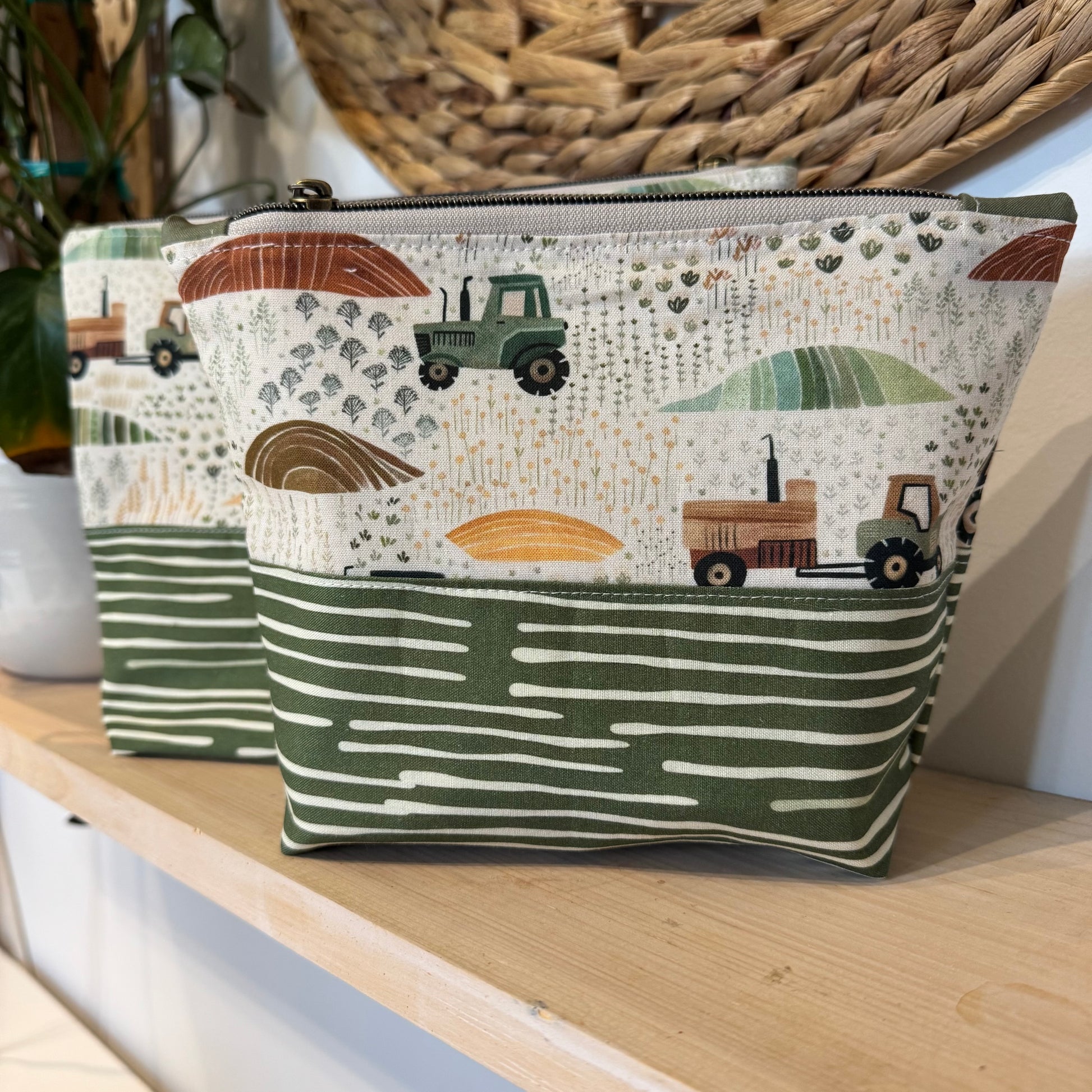 2 tailles disponibles , il se peut que le tissu du bas de la trousse soit différent de la photo, selon mes disponibilités, j'essaie de respecter la photo le plus possible mais j'essaie aussi de passer des retailles question de gaspiller le moins possible